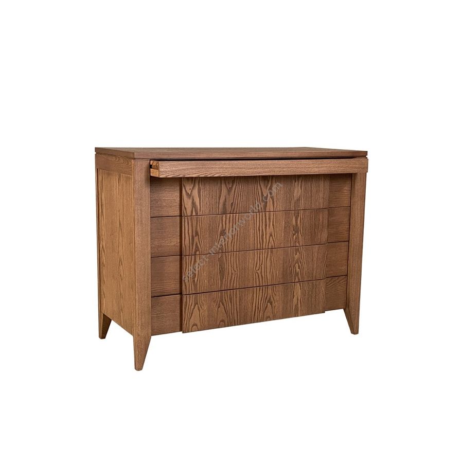Chest of drawers made of Ash wood with 4 drawers and 1 hidden drawer under the top. Drawer fronts with opposed grain and different reliefs. Upon request made of cherry wood.