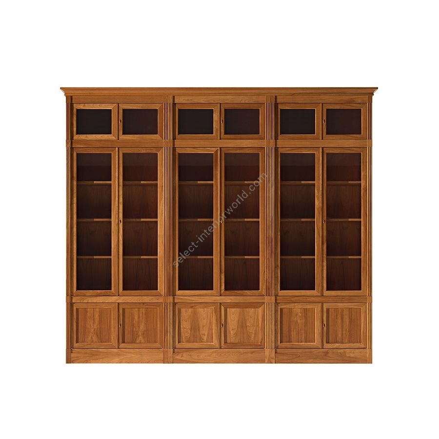 Proposal for Direttorio modular bookcase made of cherry wood. 3 central elements with glass and wooden hinged doors; 3 upper glass doors elements. Adjustable shelves on wooden support.