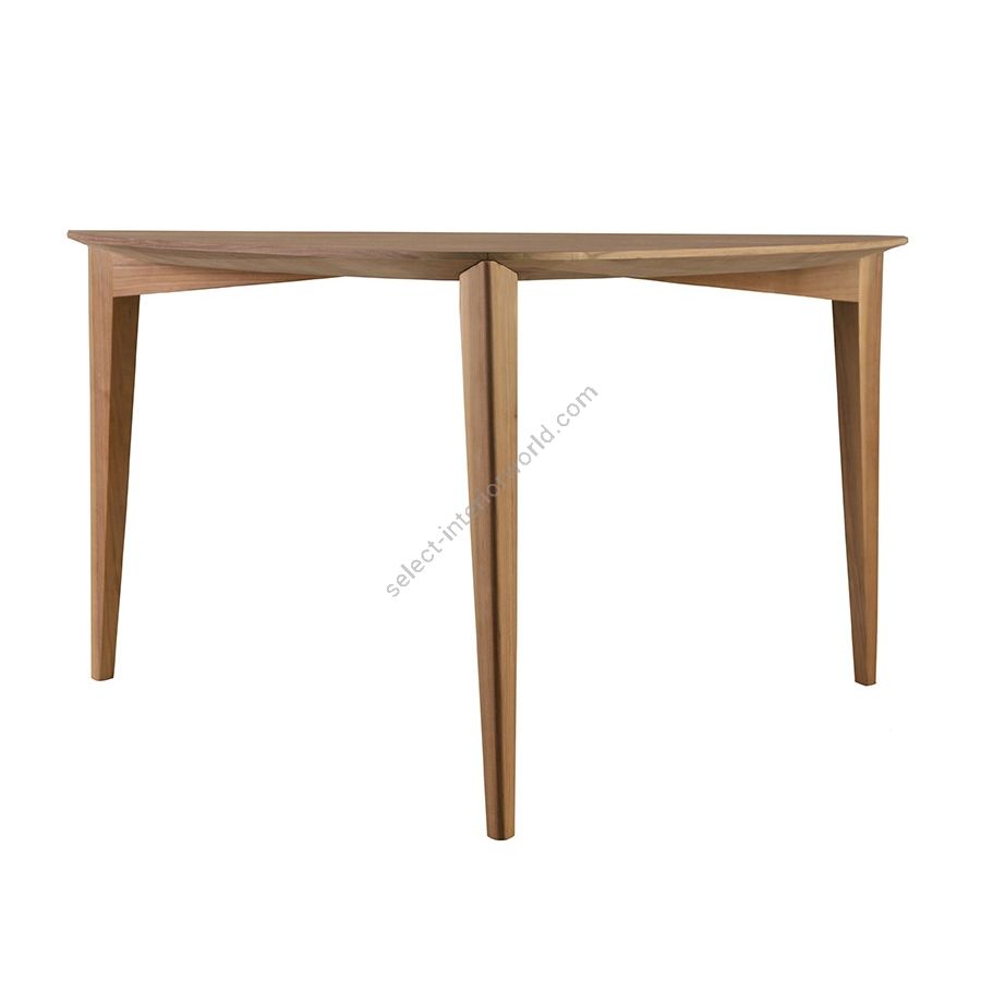 Trident abandons the classical forms and offers a new table model. Its name implies its main feature: it has three supporting legs. Trident is made of ash wood and has a peculiar triangular top with splayed edges, to bring out the slender legs, of triangular section.