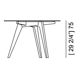 Boomerang is an elegant round table with legs united by special joints and embellished with a glass top, making the table light.