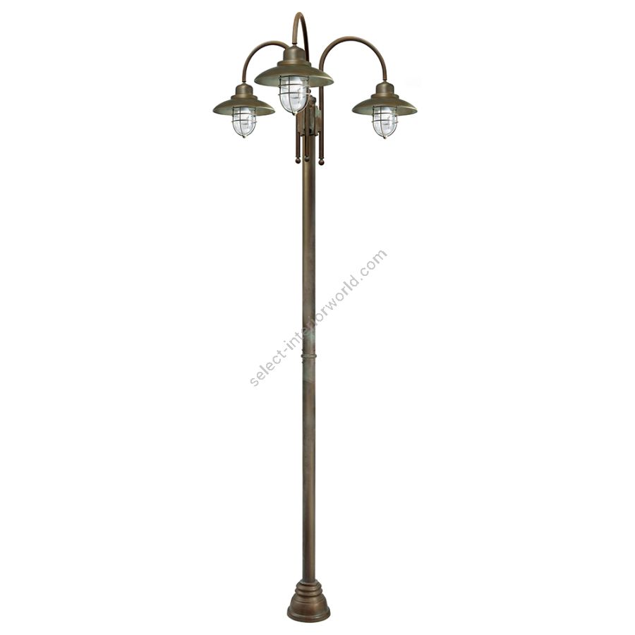 Crafted from high-quality die-cast brass and featuring transparent glass plates, this light pole is available with one, two, or three external lights, all protected by an optional brass cage. With finishes in antique copper-plated brass (.AR) and dark brown brass (.BA), it provides a classic, refined look that will complement any landscape design while ensuring resilience in extreme environments.