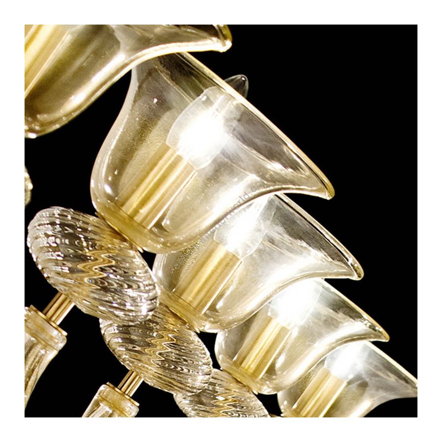 In the catalogue we propose Cellini in gold colour: pure brushed gold for the structure and mottled golden glass. A precious and yet delicate chandelier, that can embellish the whole surrounding space. Cellini, with its 14 lights, is the ideal solution to enlighten wide rectangular rooms.