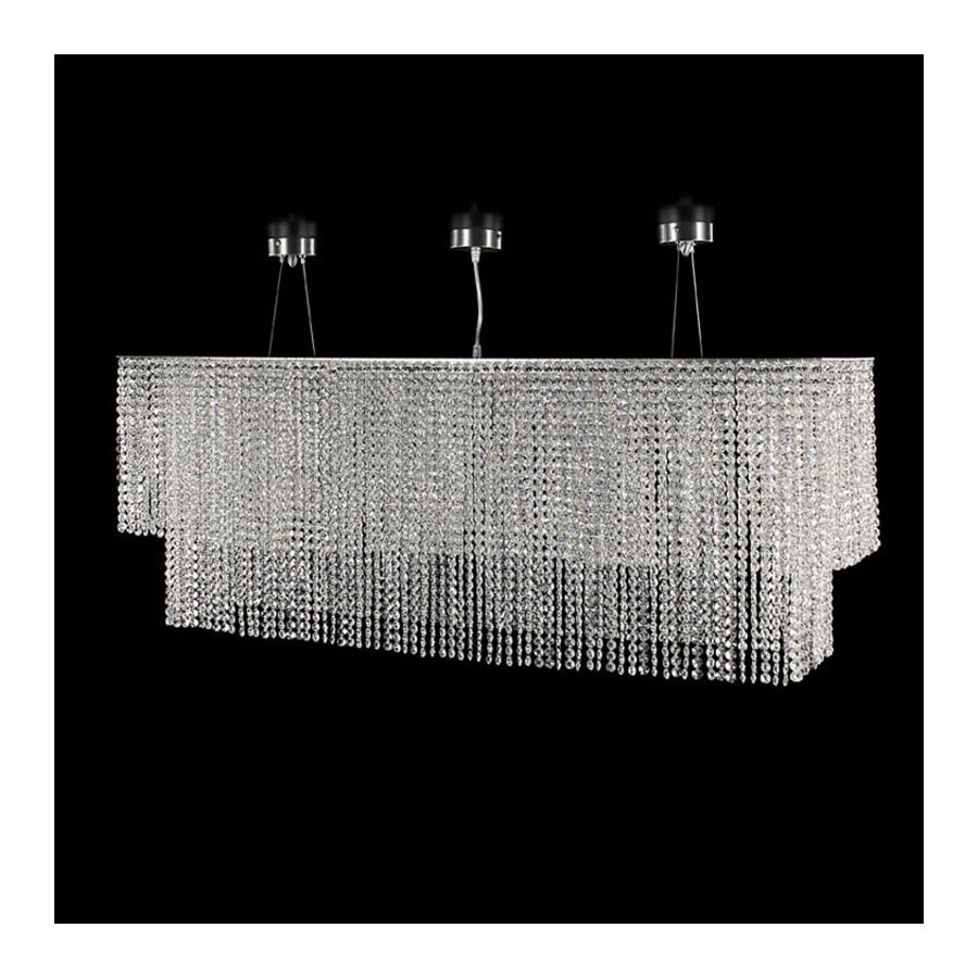 The crystal ceiling light Stratus R can be positioned above a table, but it can also be used as a module to decorate large spaces or for projects in the contract sector. Also the number of crystal layers can be choosen by the customer; it determines the lenght of the lighting work. This allows to place Stratus R in rooms with high ceiling, but also to adapt it to small rooms.