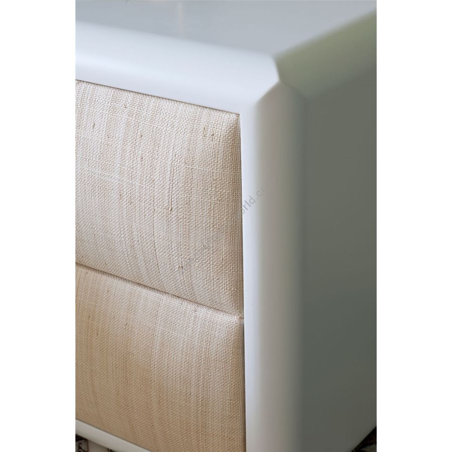 Structure and interiors in white/ivory/black mat lacquered. Drawers fronts covered in raffia sand/camel.| Dimensions (HxWxD): | cm: 55x60x50 / inch: 21.65"x23.62"x19.69" |