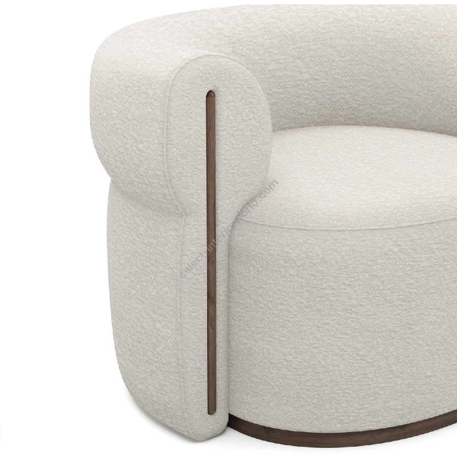The rounded back and armrests create a welcoming and cozy seating experience. Highlighted by refined walnut details, the Camille Armchair adds a touch of sophistication to any living space.