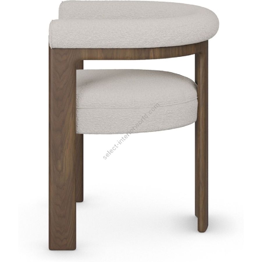 Featuring a unique three-leg walnut base, Mathilde stands out with its distinctive silhouette, adding a touch of modern flair to your dining space. Upholstered in luxurious bouclé fabric, it offers a soft and inviting feel, enhancing comfort during long meals and gatherings. With its combination of walnut and bouclé fabric, Mathilde exudes a timeless charm that effortlessly complements various decor styles. Whether you’re hosting a formal dinner or enjoying casual meals with loved ones, Mathilde provides both comfort and aesthetic appeal.