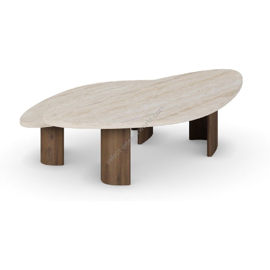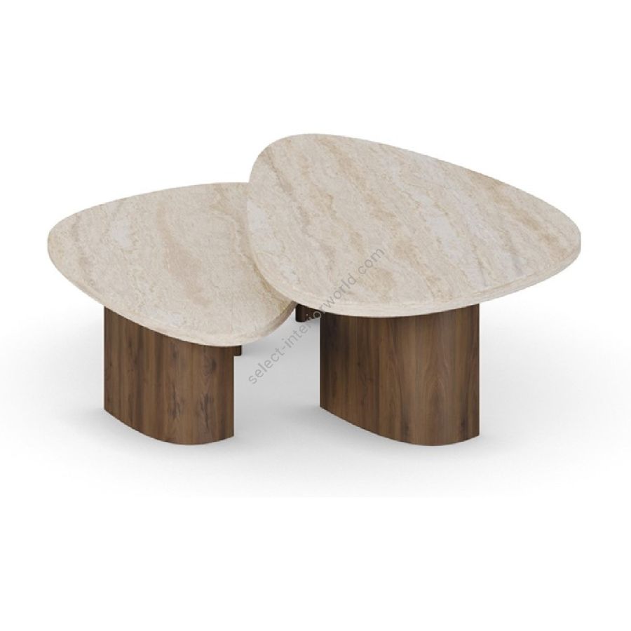 Agnes Coffee Table, a sophisticated fusion of natural travertine and rich walnut. This elegant table features a unique, dual-surface design that provides both aesthetic appeal and functional versatility. The smooth travertine tops rest gracefully on sturdy walnut bases, showcasing the harmonious blend of materials. Perfect for contemporary and classic interiors alike, the Agnes Coffee Table is a timeless addition to your living space.