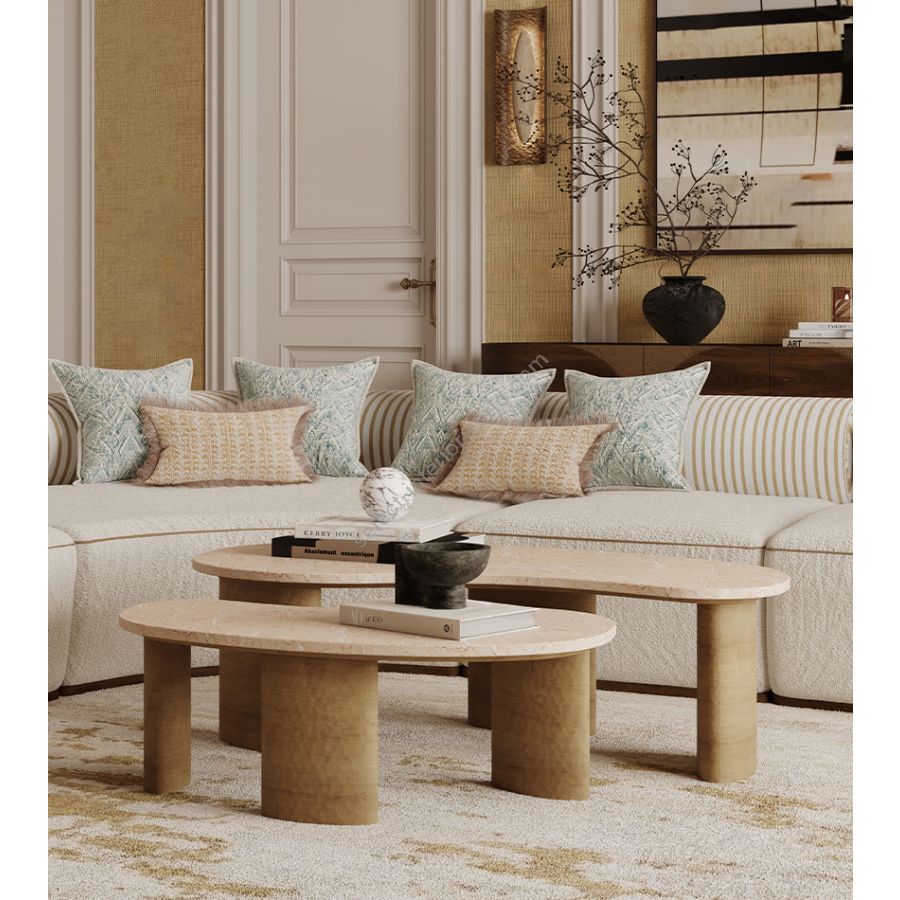 The Amara Coffee Table by Nolita Harbour is a harmonious blend of natural beauty and contemporary design, crafted to bring elegance and functionality to your living space. This coffee table is a stunning piece that combines luxurious materials with an organic, sculptural form, making it a perfect centerpiece for any modern interior.