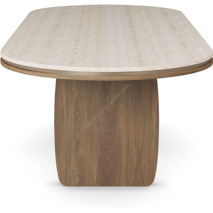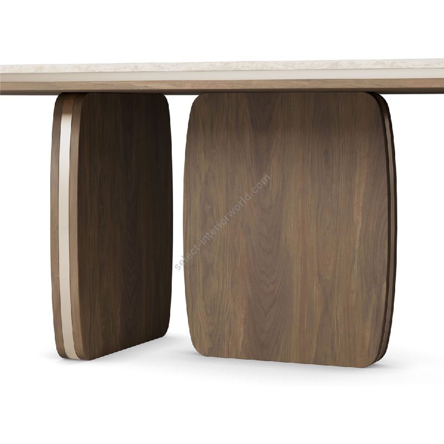 Assia II Dining Table from Nolita Harbour, now reimagined with walnut and travertine finishes. This sophisticated version showcases a smooth travertine tabletop paired with robust walnut sculptural legs, embodying a harmonious blend of natural textures and contemporary design. Perfect for elevating any dining space, the Assia Dining Table seamlessly combines functionality with artistic craftsmanship.