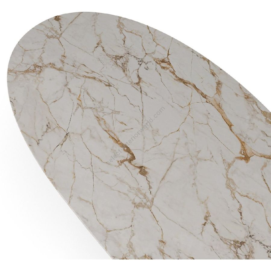 Nolita Harbour Élodie Dining Table, a masterpiece of modern design and exceptional craftsmanship. This exquisite dining table features a sleek, oval marble top that exudes sophistication and timeless elegance. The natural veining of the marble surface adds a unique touch, making each table a one-of-a-kind piece.