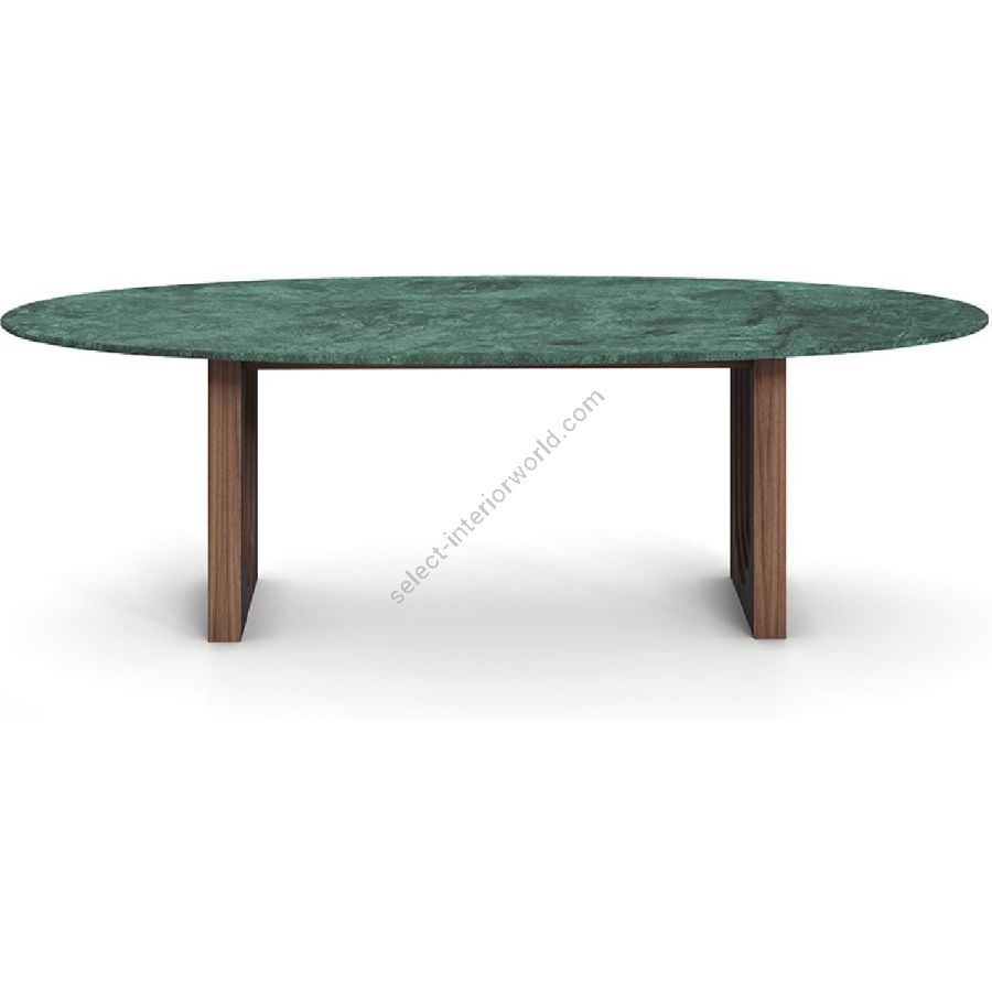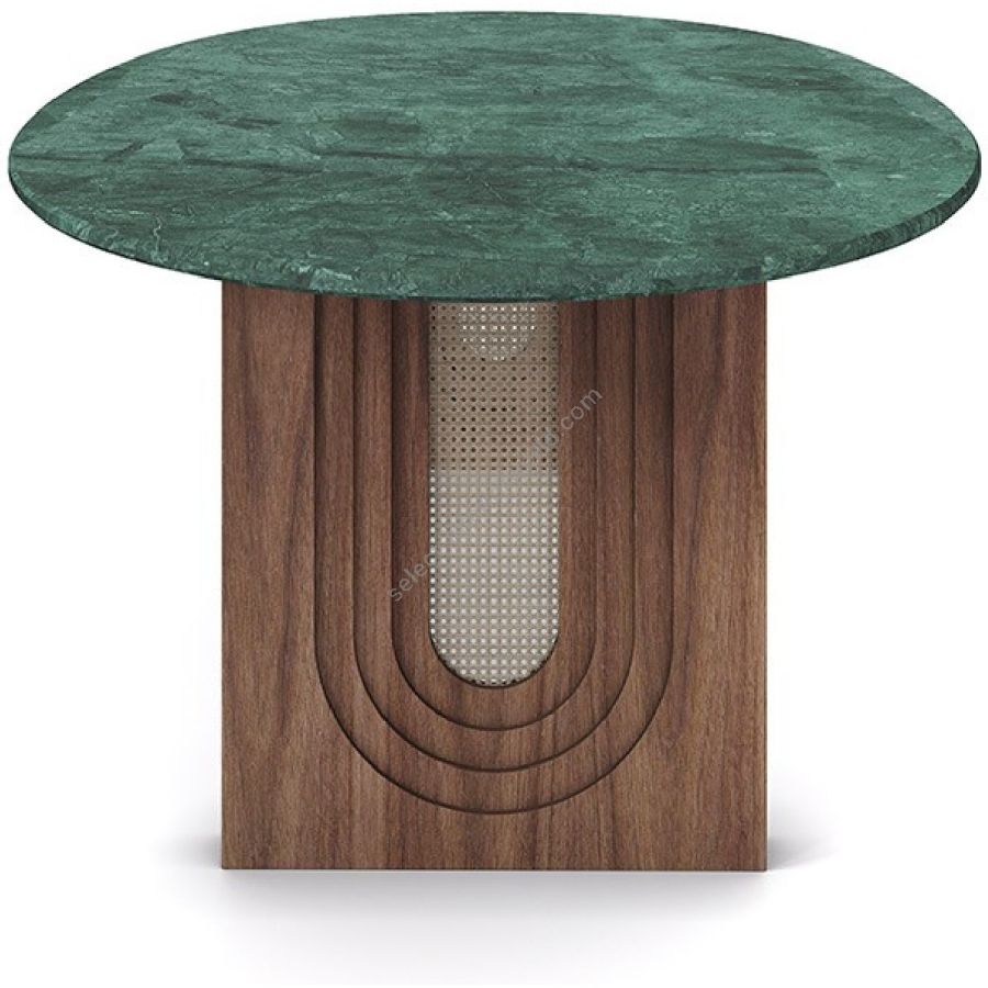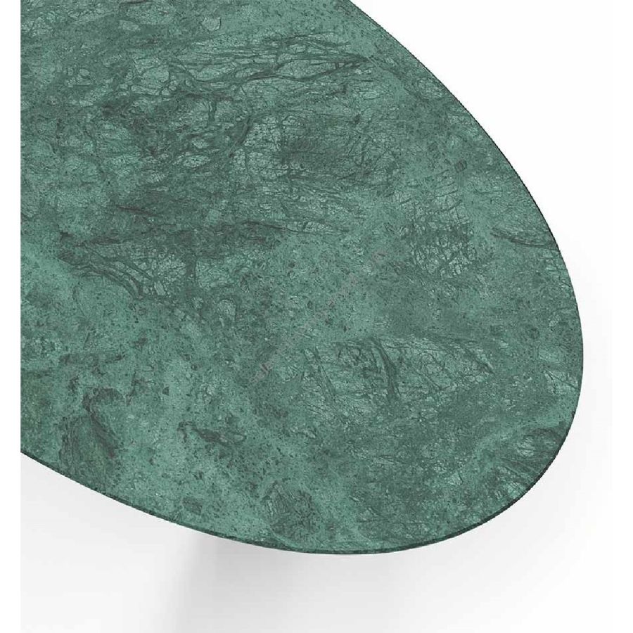 Nolita Harbour Emerald Dining Table, a masterpiece that combines opulent materials and striking design. This exquisite dining table features a stunning oval marble top in a rich emerald hue, creating a vibrant focal point for any dining space. The natural veining and deep green color of the marble add a sense of luxury and uniqueness to each piece.