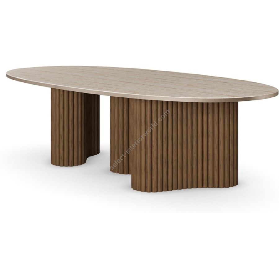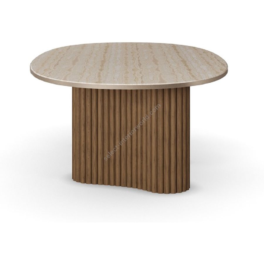 The base is crafted from walnut with a matte finish, featuring ribbed detailing that adds texture and depth to its aesthetic. Ideal for both casual gatherings and formal dining, the Santi Dining Table effortlessly elevates your dining experience with its exquisite craftsmanship and elegant design.