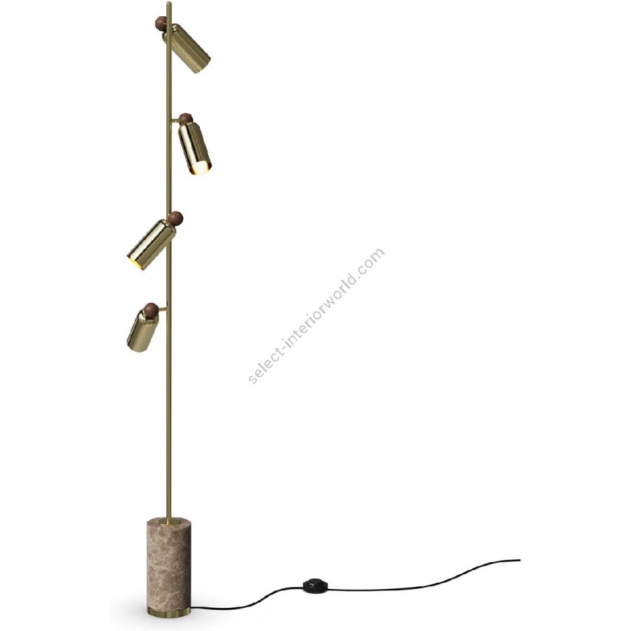 The Alan floor lamp is a striking blend of modern minimalism and luxurious materials, designed to elevate any space with its sculptural presence. Featuring a sleek brass-finished metal frame, this lamp is adorned with four adjustable spotlights, allowing for customizable illumination. Its cylindrical Light Emperor base adds a grounding, organic element, while walnut detailing introduces warmth and texture. The Alan floor lamp is both a functional lighting solution and an artistic statement, making it an ideal addition to contemporary interiors, reading nooks, or design-forward living spaces.