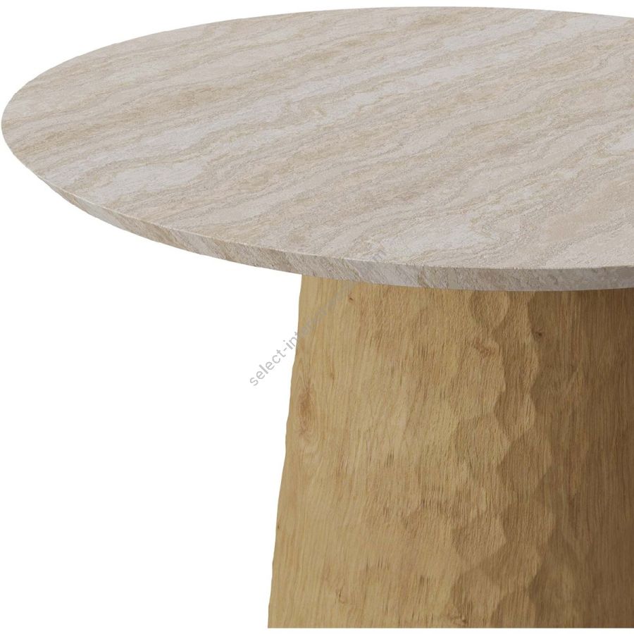Nolita Harbour Elke Side Table, a stunning piece that combines natural beauty with exquisite craftsmanship. This elegantly designed side table features a solid carved oak base that showcases the natural grain and texture of the wood. Topped with a luxurious travertine surface, the Elke side table offers a perfect blend of durability and sophistication, making it an ideal addition to any living space.