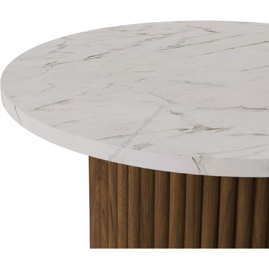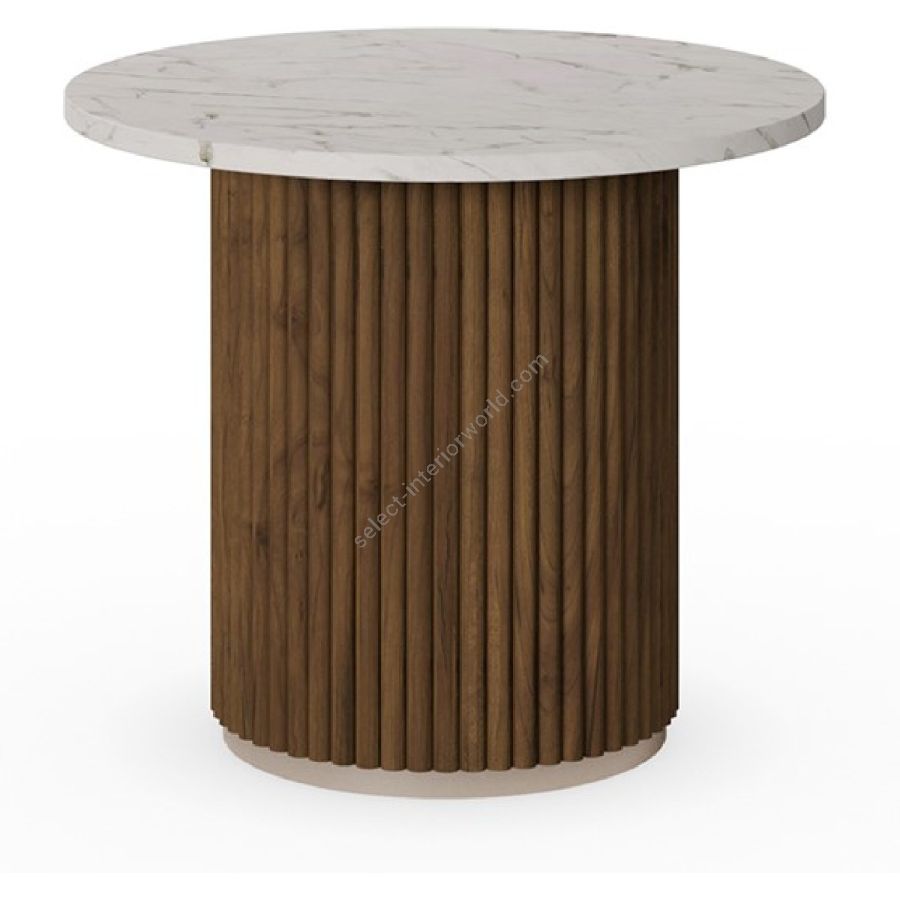 Nolita Harbour Roland Side Table, a seamless fusion of modern design and natural elegance. This impeccably crafted side table features a luxurious marble top, providing a sophisticated surface that complements any decor. The base is constructed from rich, fluted wood, adding texture and depth to the overall aesthetic.