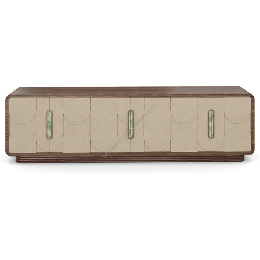 The Brielle sideboard exemplifies sophisticated design with its rich blend of materials and intricate detailing. Featuring an elegant ebony wood finish, the piece radiates a modern yet timeless appeal. Its textured plaster doors, adorned with subtle geometric patterns, add depth and character, making it a true centerpiece. The ceramic handles with brass detailing provide an artistic flair, making the Brielle sideboard not just functional but a work of art. Ideal for contemporary living spaces, this sideboard will enhance any room with its luxurious and refined aesthetic.