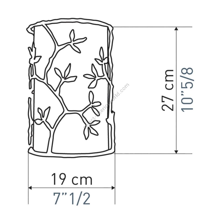 Width: 19 cm, Projection: 10 cm, Maximum: 40 w, Les Abat-jours peuvent être fabriqués dans 18 coloris au choix, The colour for the shades can be chosen out to 18 different hues