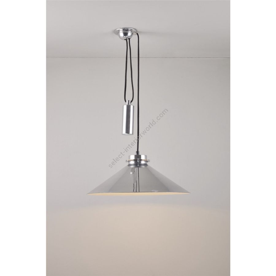 A modern and minimalist design, the Codie is available as a pendant or an adjustable rise & fall light. Handmade from polished aluminium, with a white interior, the wider shade allows for a large, even spread of light.