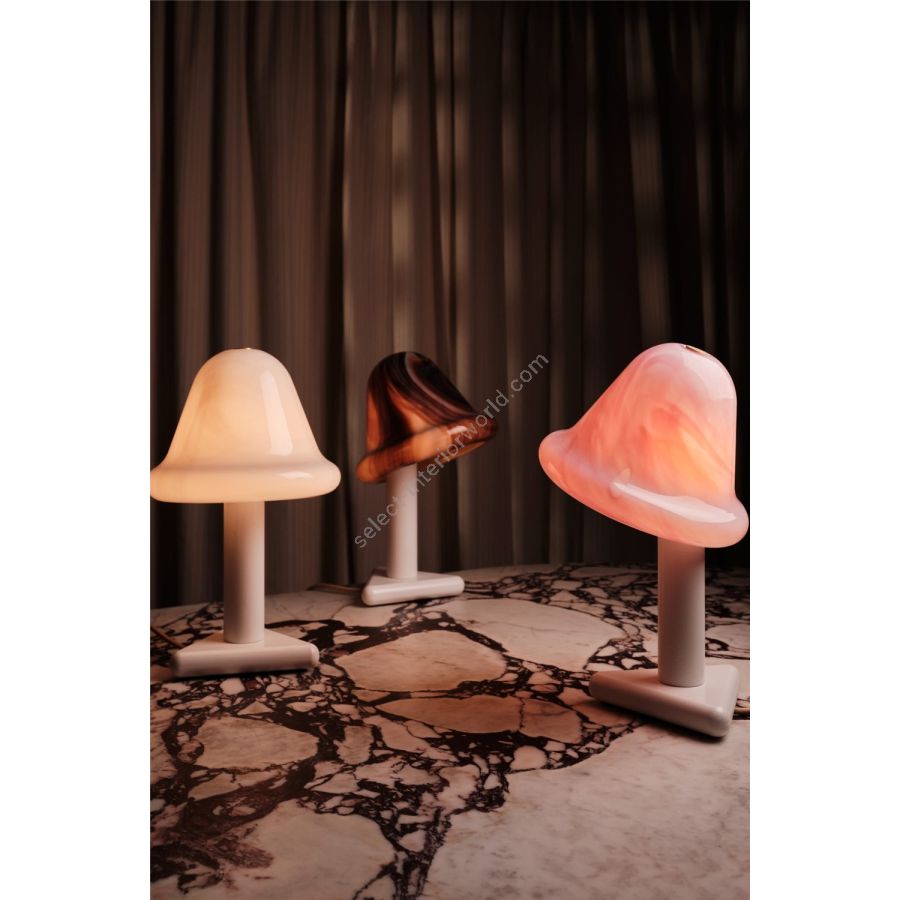 Created in collaboration with London design studio Buchanan Studio, the Neotenic lighting collection is inspired by the craft of glassmaking, curved shapes and a touch of Neapolitan nostalgia – making handmade glass the hero. The Neo Table Light’s curvaceous bullnose shade is mouth blown in opal glass and swirled with good-enough-to-eat palette of Strawberry, Chocolate and Vanilla tones. When unlit, the swirly glass surface almost looks like delicious confectionery. When illuminated, the light transforms into a glowing pool of colour that brings warmth and character to any setting.