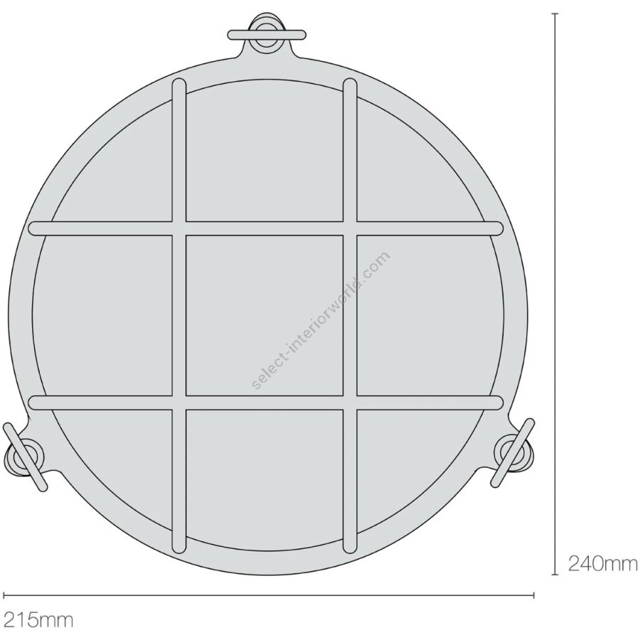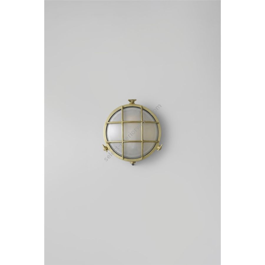 A die-cast bulkhead light in natural brass (unlacquered) with frosted glass diffusers. Also available in weathered brass and a chrome plated finish. Front guard secured by three wing nuts. Glanded surface cable entry.