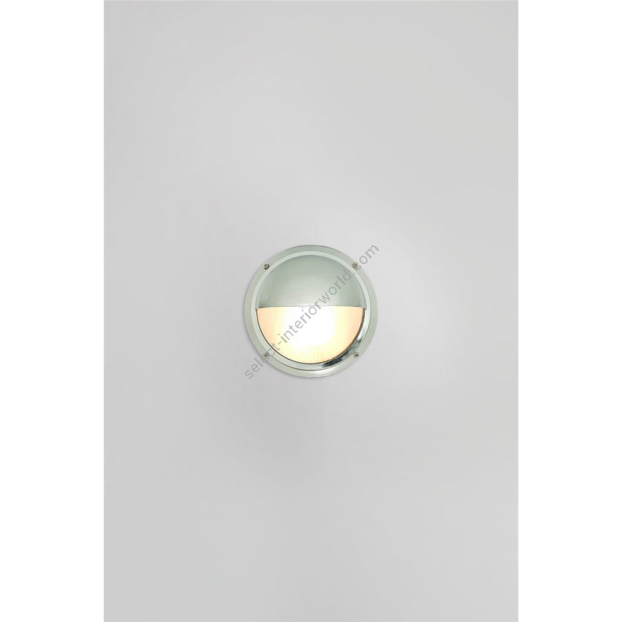 Die-cast bulkhead light with a half guard cover. Available in polished brass, weathered brass or a chrome plated finish, all with frosted glass diffusers. Fronts secured with socket head screws.