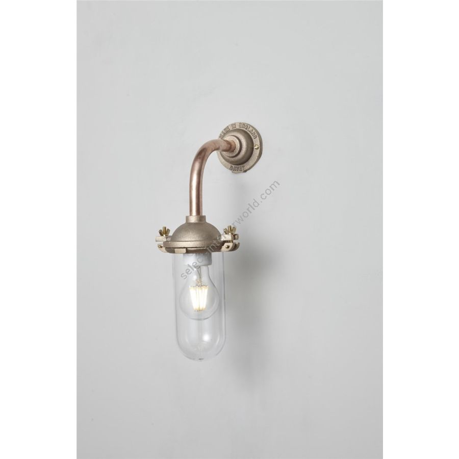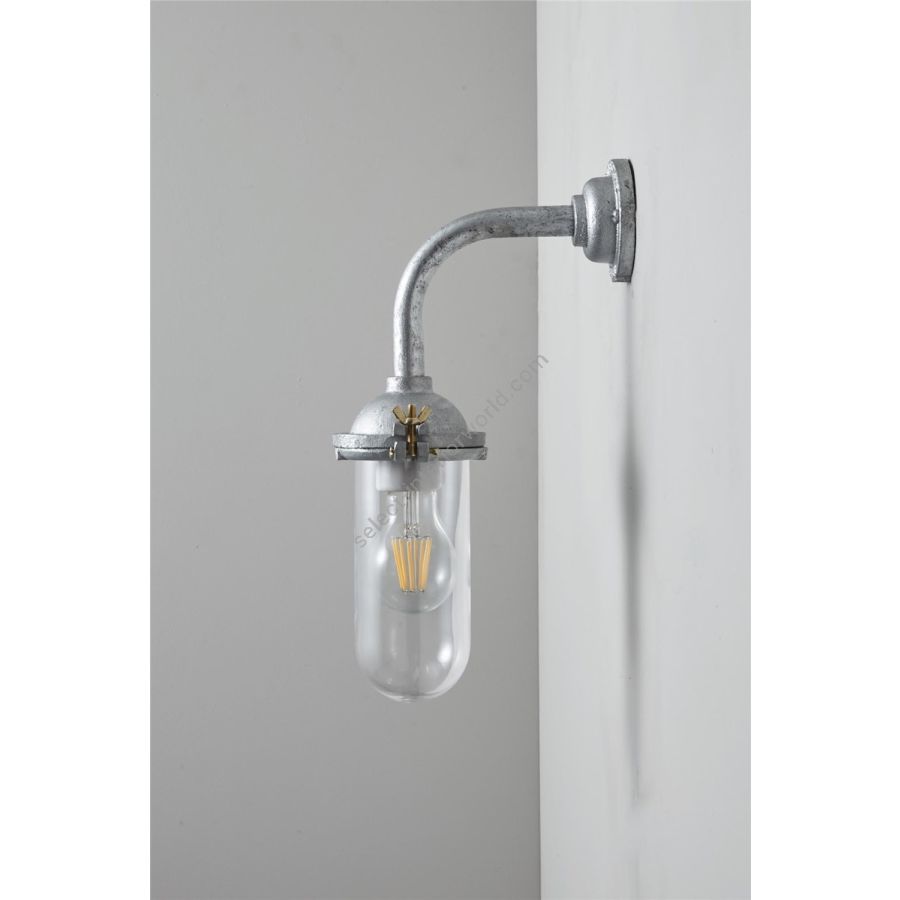 An Exterior Bracket Light with a simple ring that holds the clear or frosted glass fitting. This beautifully simple wall light is available in either galvanised cast iron or sandblasted bronze, and with a canted or right angle arm.