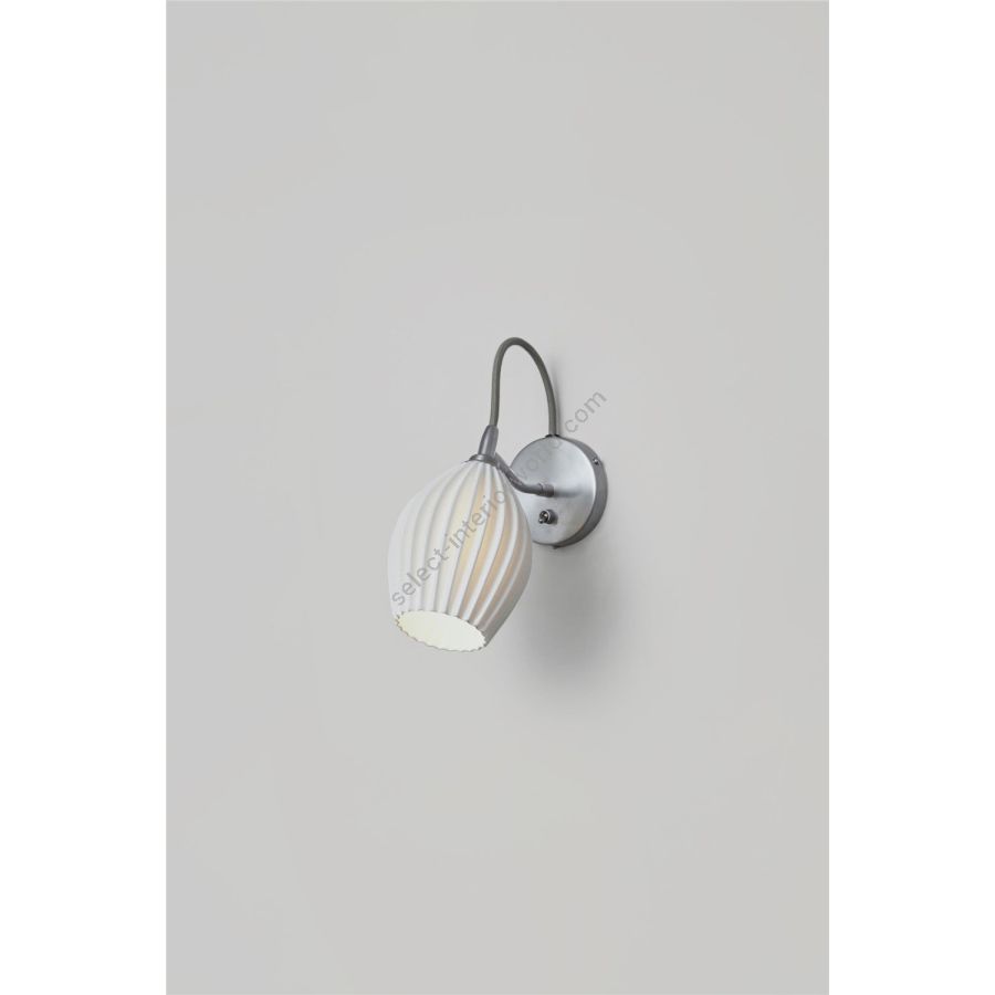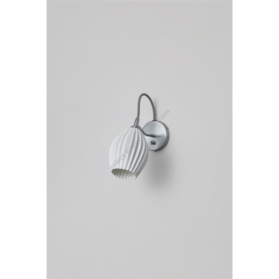 The Fin, with its eye-catching bone china shade, expertly moulded into intricate organic shapes, creates dramatic light when lit and retains a sculptural beauty when off. Handmade in Stoke-on-Trent, its distinctive shade is angled onto a satin chrome back plate. The new grey cotton braided cable complements the style beautifully.