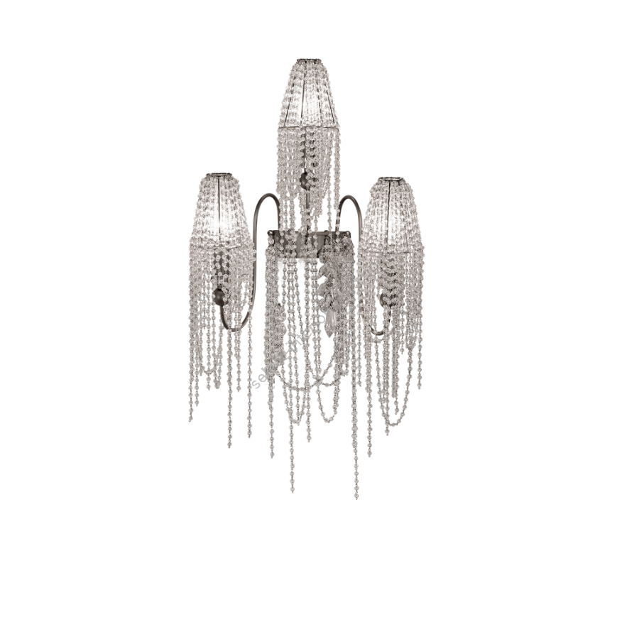 The strings of crystals are exclusively transparent and enriched by irregular elements of different shapes. A coup de theatre of great effect.