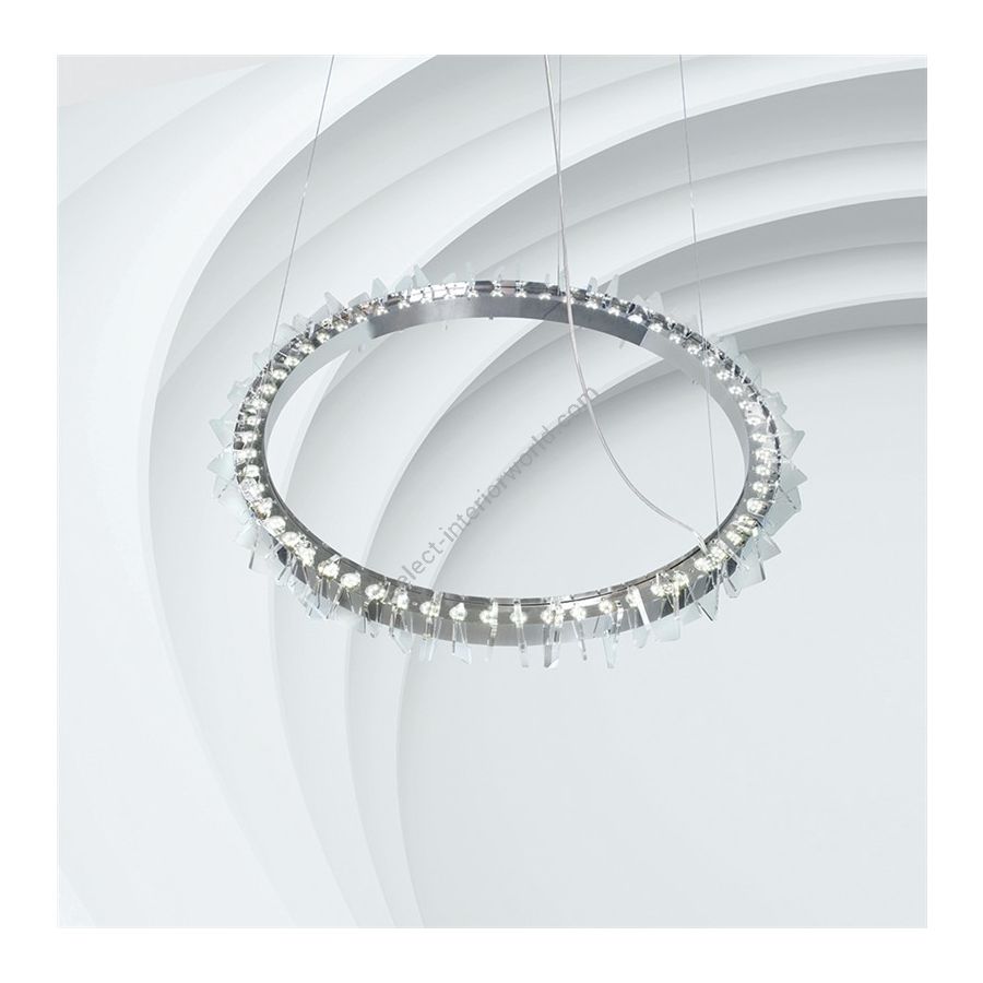 | Diameter available | h 40 - 160, Ø 54 cm - 48 x LED 1W - 3000K - 6642 Lm - 54 W tot. h 40 - 160, Ø 66 cm - 60 x LED 1W - 3000K - 7380 Lm - 60 W tot h 40 - 160, Ø 80 cm - 80 x LED 1W - 3000K - 9840 Lm - 80 W tot. h 40 - 160, Ø 100 cm - 100 x LED 1W - 3000K - 12300 Lm - 100 W tot. h 40 - 160, Ø 120 cm - 120 x LED 1W - 3000K - 14760 Lm - 120 W tot |