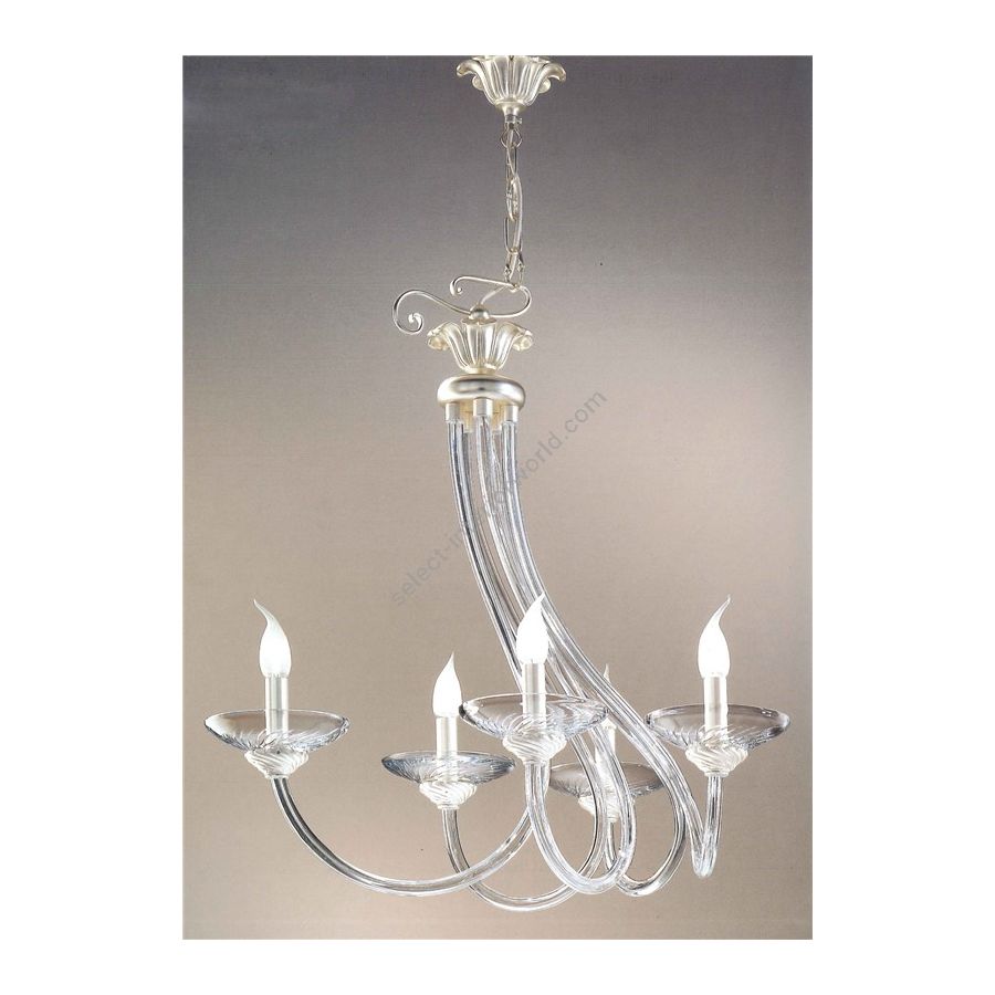 Chandelier with wide arms made of murano glass available in two colours and crystal bobeches.
