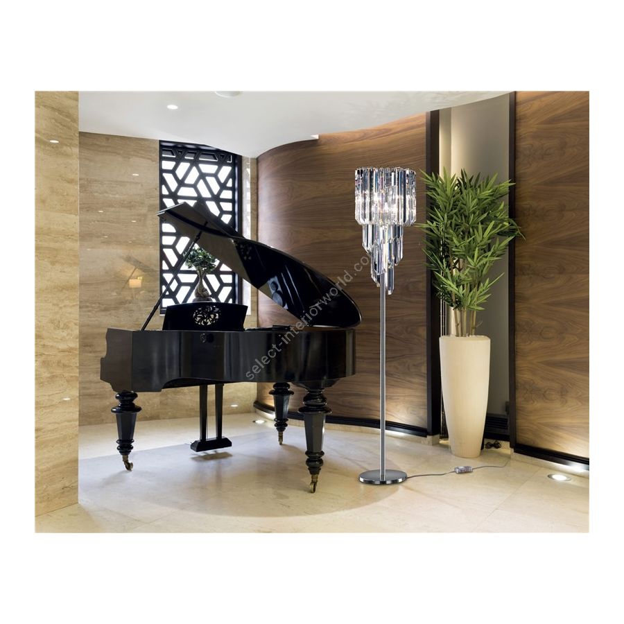 Floor lamp with crystal trihedrals or trihedrals and quadrihedrals in murano glass, available in many colours and a frame in 24 karat polished gold or chrome.