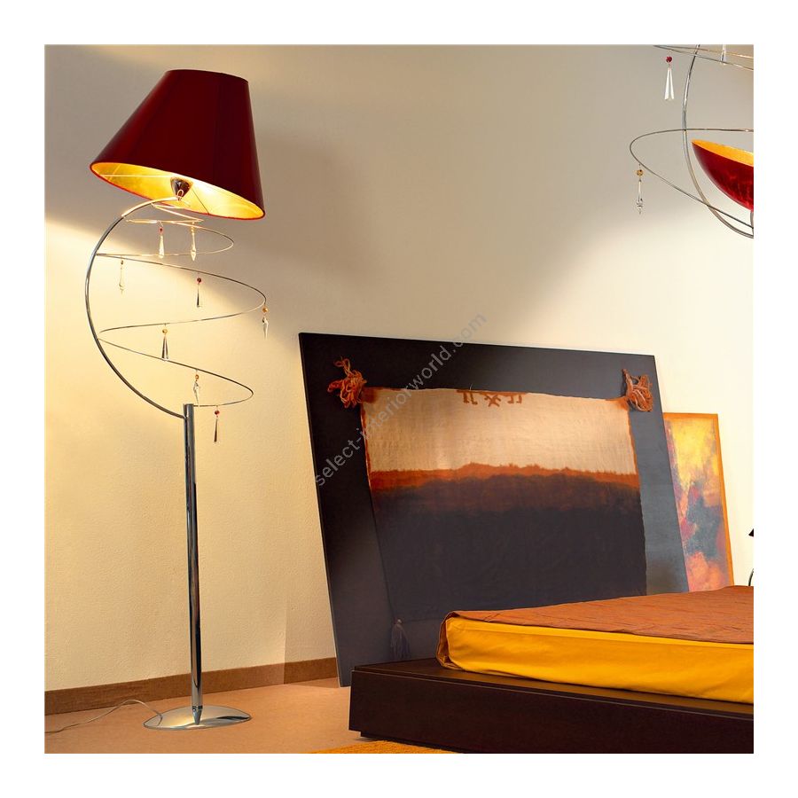 Floor lamp with a contemporary and sophisticated design, that perfectly adapts to the following home environments: living room, lounge and bedroom floor lamp available in 3 different finishes in relation to the lampshade and in 2 different finishes with reference to the metal frame.