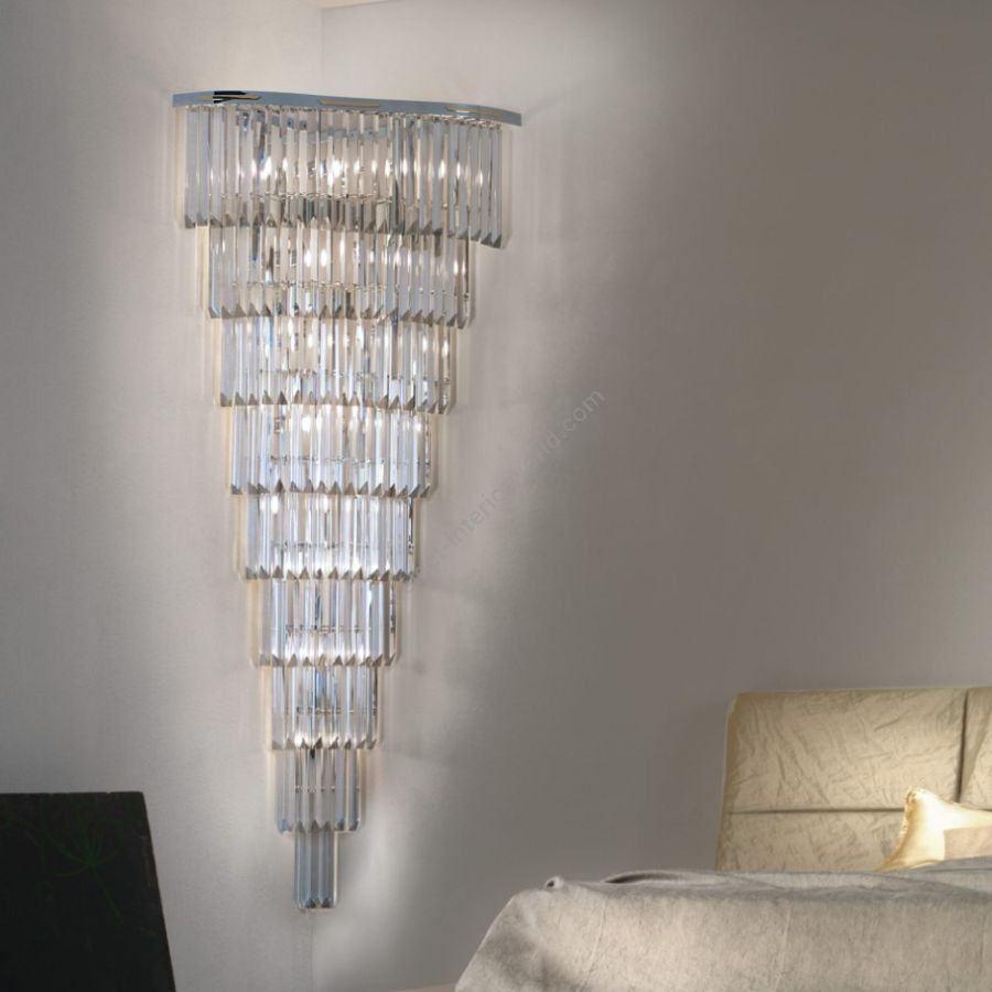 Elegant wall light in precious crystal or murano glass in different colours. Structure in 24 karat gold or polished chrome finish.