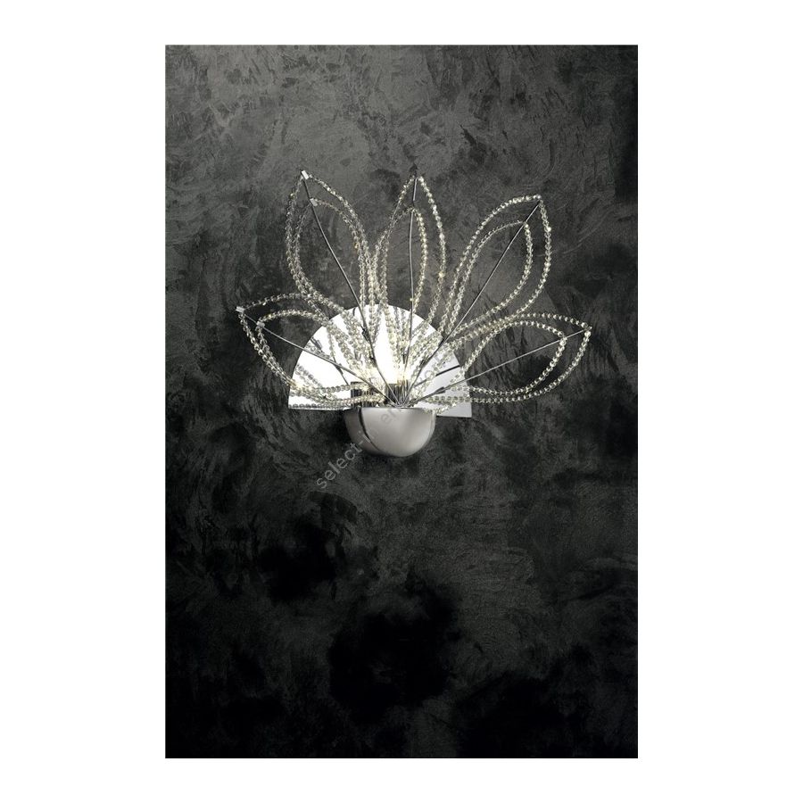 Floral design wall light in the purest crystal and polished chrome or 24 karat gold frame.