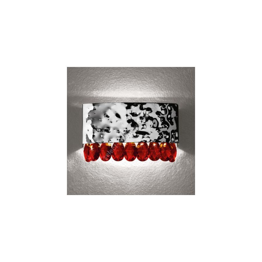 Wall light in clear or coloured crystal with handcrafted hammered metal structure, 100% made in italy.