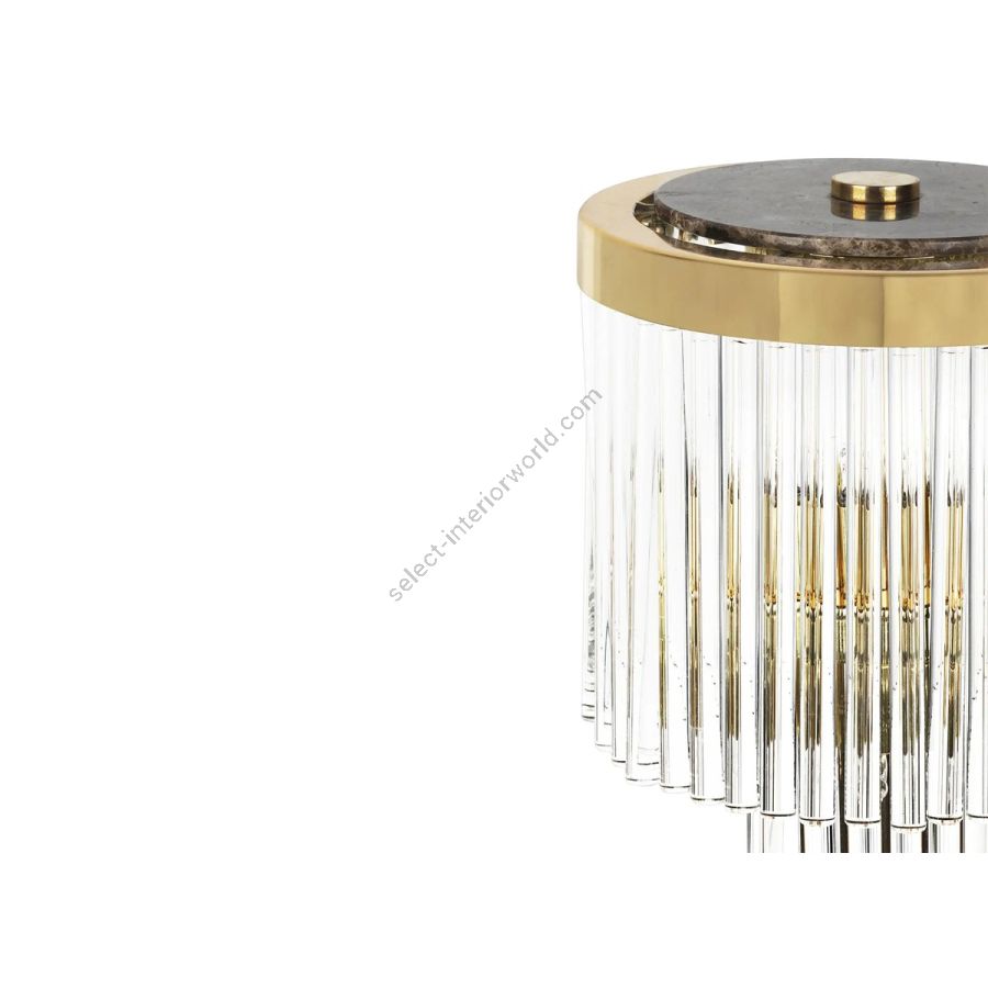 A representation of the architectural lines of lighthouses in the shape of a luxury table lamp. Pharo I Table Lamp has a marble base that supports the delicate crystals, topped with a brass plate. Pharo I is the perfect finishing touch for any desk or bedside table.