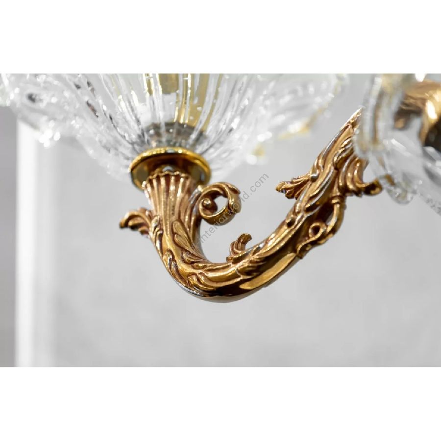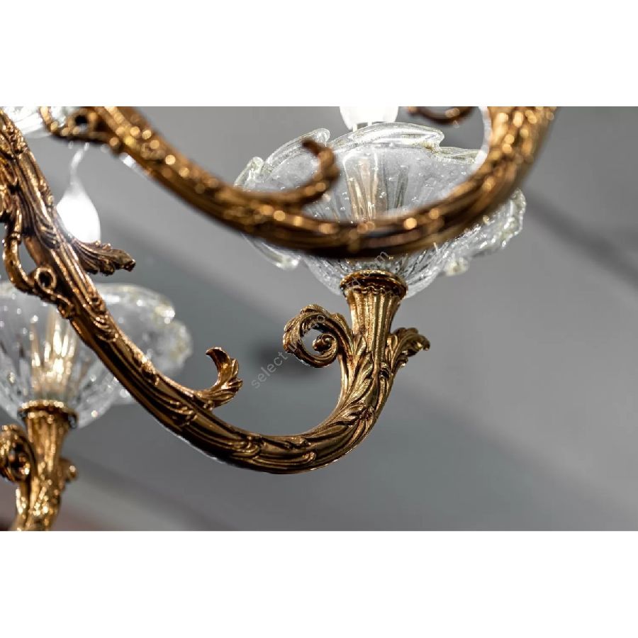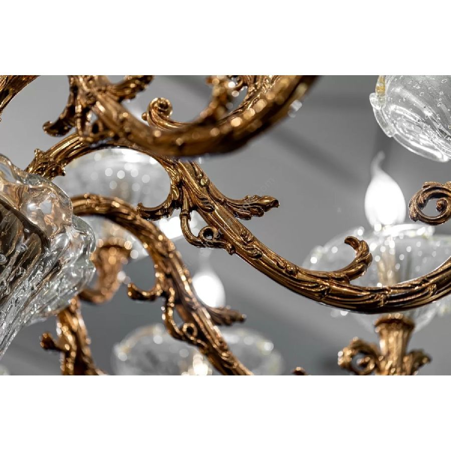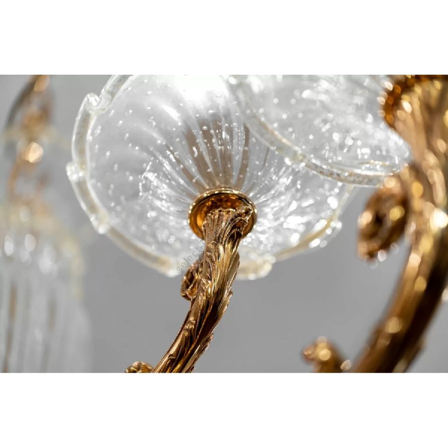 The Charlotte Collection, available in different finishes, is distinguished by the particularity of its crystal: bubbles and golden specks that reflect the color of the metal making it unique. The suspensions can be accompanied by wall lamps, lamps and table lamps for a complete classy furniture. the lampshades are in ivory-colored silk.