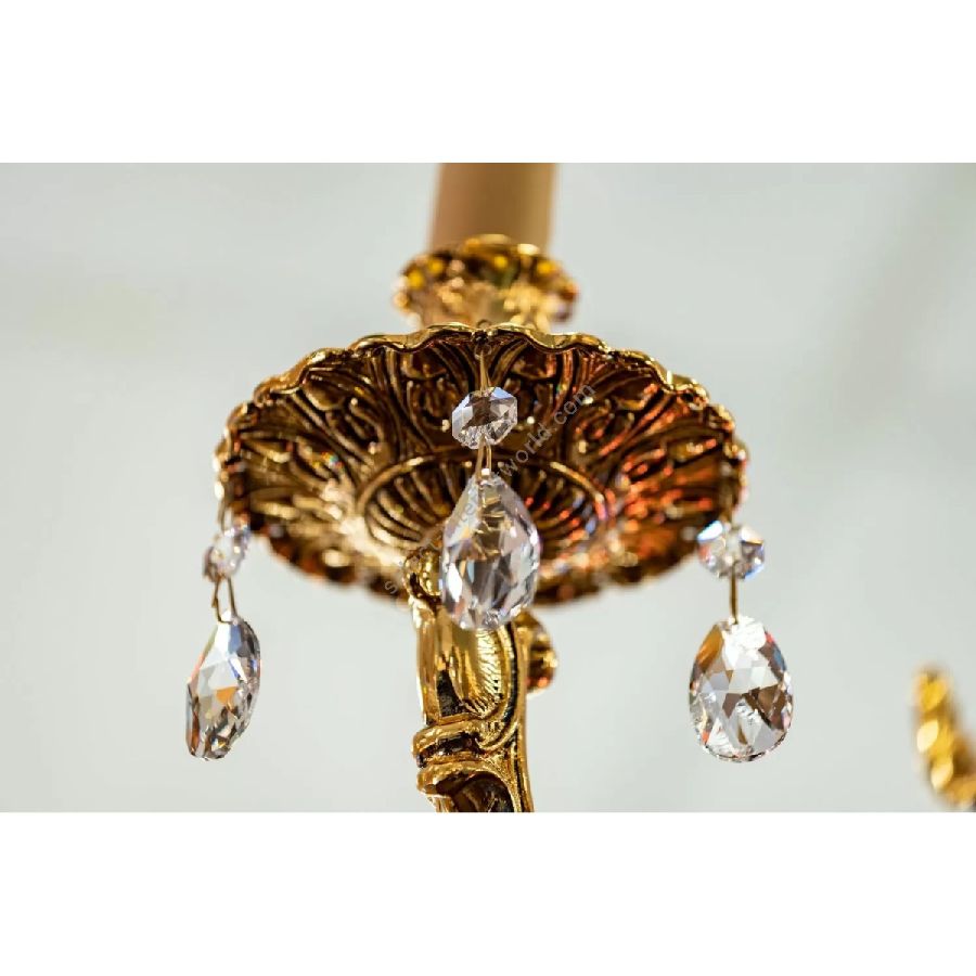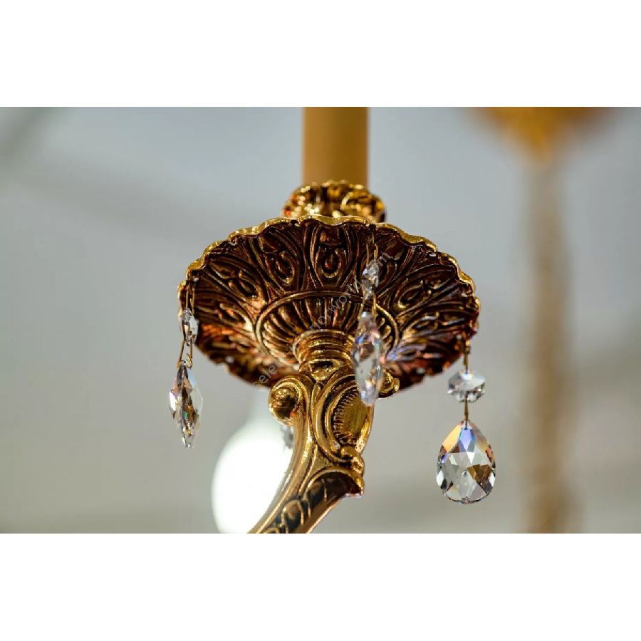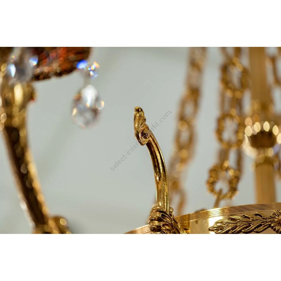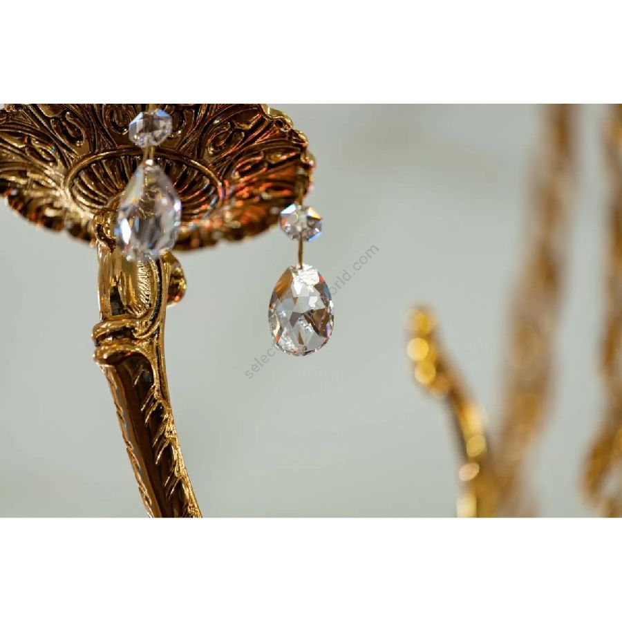 The suspensions and ceiling lights in shaded pure gold give life to the Edgard collection. Machined brass combined with important crystal cups available in amber, red or transparent colors are enriched with small drops in Schoeler crystal. All the models can be combined with the brass and crystal wall light.