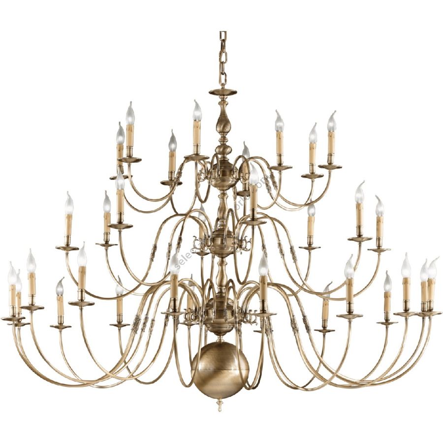 The Flemish style chandelier could not miss in our production, sober and essential with a simple decorative detail in the arms, it is presented in the Antique Bronze finish which gives an antique halo to an ever-present style. It can be made in various sizes and finishes