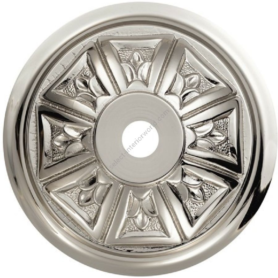 Grace is a suspension in brass, with a modern polished nickel finish and Schoeler crystal: cup, carved details and drop-shaped pendants. Applique available on request