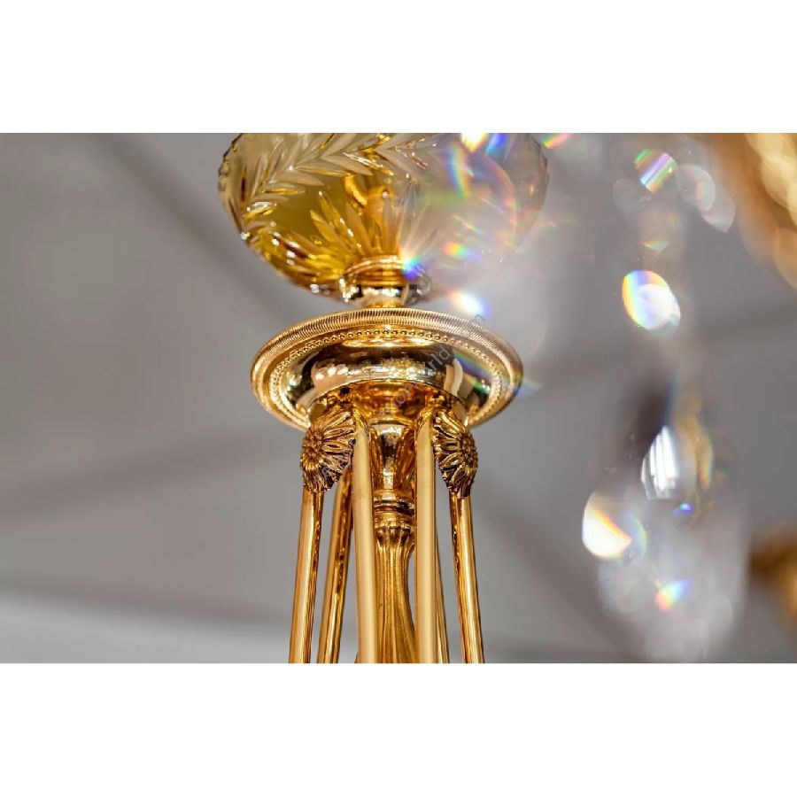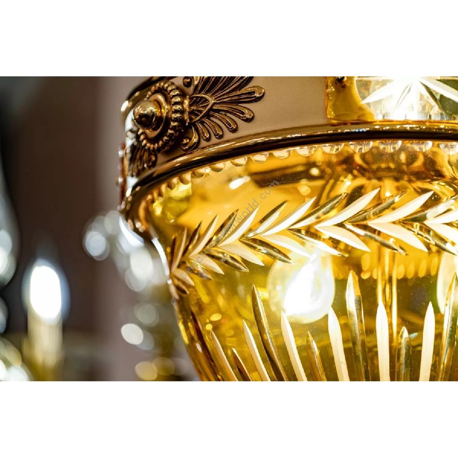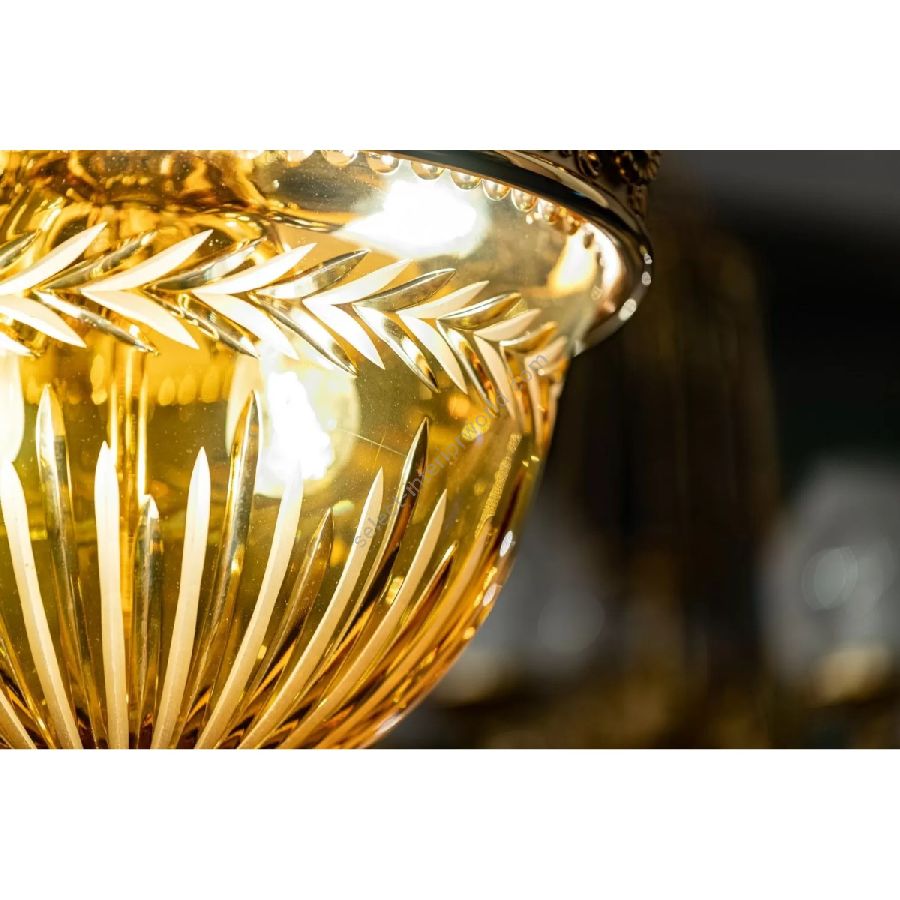 The Amber collection stands out for its beautiful carved crystal. The cups and the details of an intense amber color are further enhanced by the shaded pure gold finish of the brass. Perfect to complete a classic and sumptuous but always contemporary furniture. The models in the 431 collection are supplied with cream-colored pleated organza lampshades.