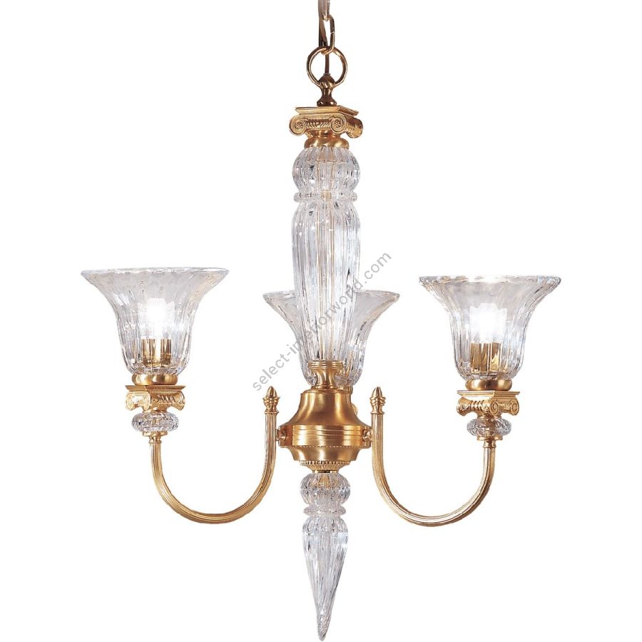 Elegant collection of classic style chandeliers, lamps and wall lamps in brass with satin gold finish and transparent crystal. it is possible to customize finishes and sizes.