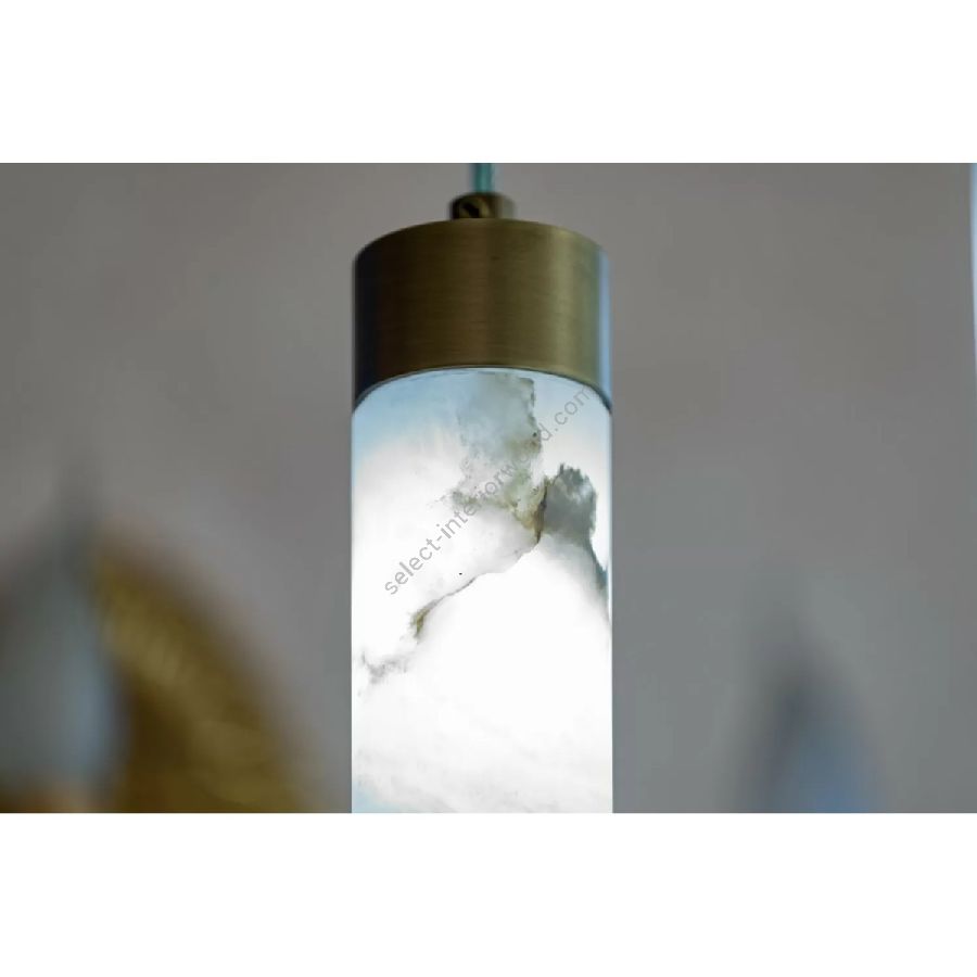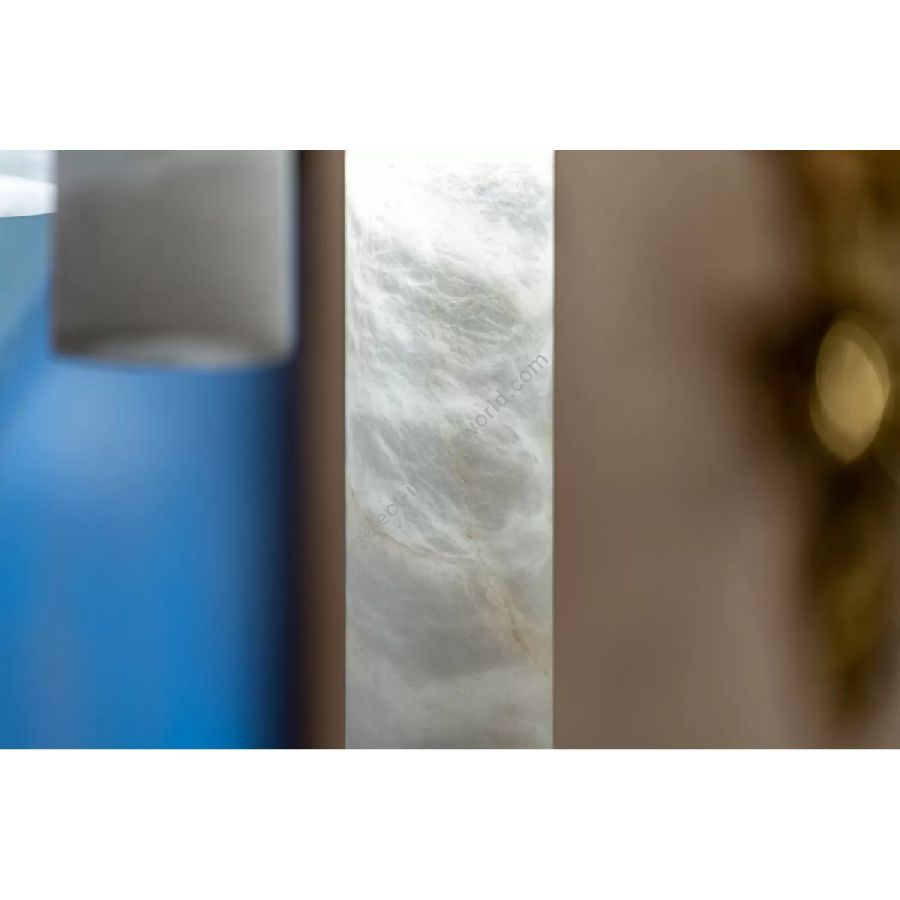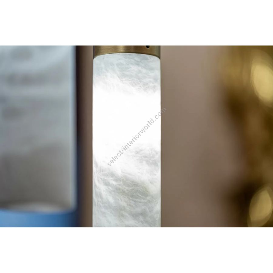 The simple alabaster tube, where the brass acts as a support, is simply spectacular once the light highlights the natural veins of the alabaster. Each piece is different from the other, a uniqueness that only nature can give and that makes it a 'timeless lamp' suitable for any type of setting from the most classic to the design. The collection consists of suspensions and wall lights.