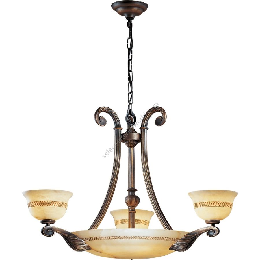 Complete collection of chandeliers, suspensions, wall lamps, ceiling lights, table and floor lamps, in brass, in satin and rust finish, with antique alabaster and delicate decoration. Customizable in finishes.