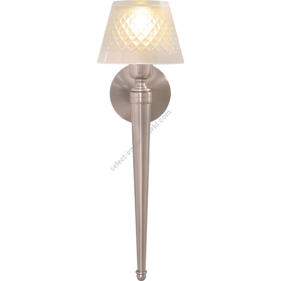 Essential and refined brass wall ligth in satin nickel and frosted crystal shade
