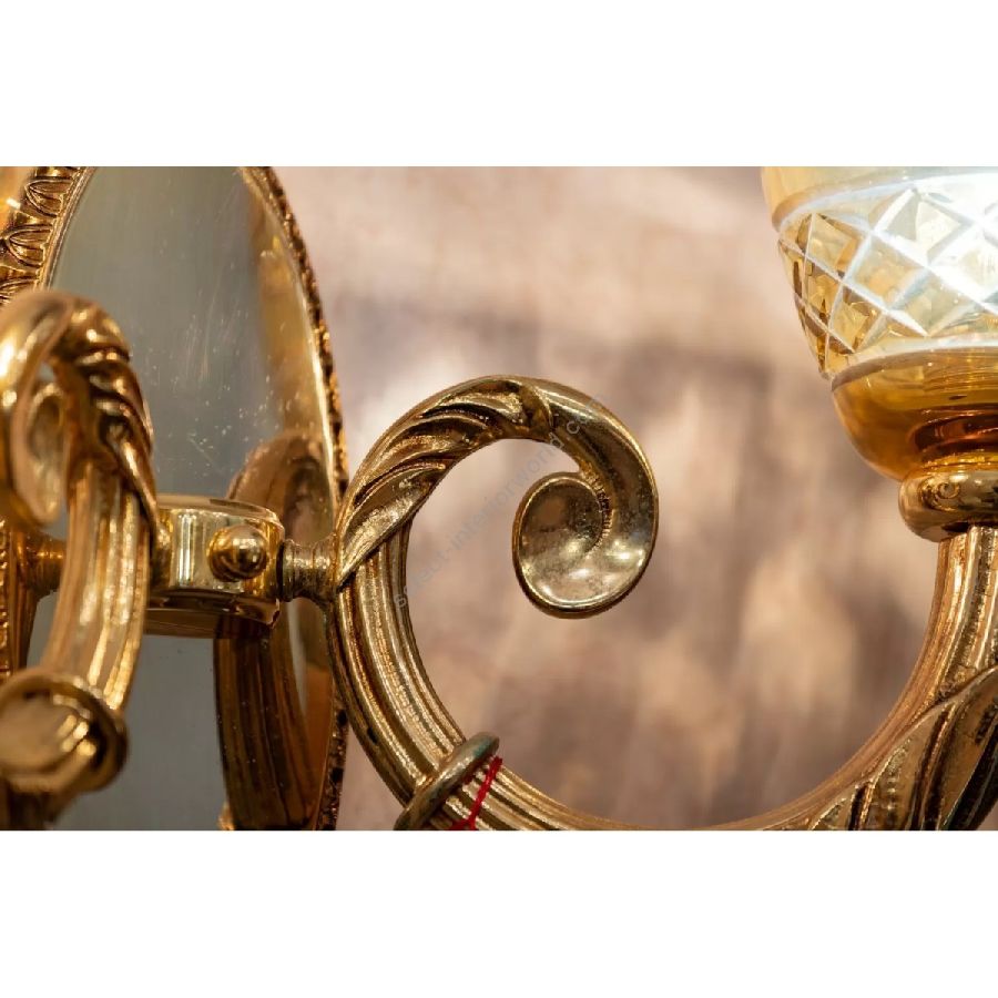 Shaded gold plated finish wall light with amber crystal