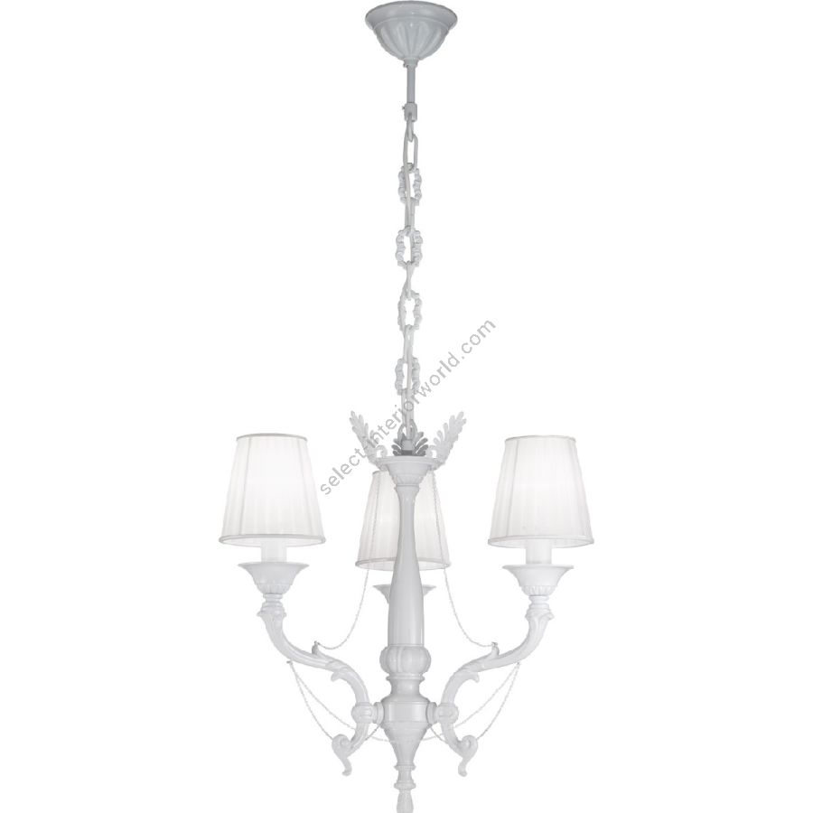 The glossy white finish and the white organza lampshades make the Ginevra collection a modern classic, suitable for more contemporary rooms, while the Antique Bronze finish and the taupe color organza lampshades give a refined appearance. Customizable in finishes and sizes