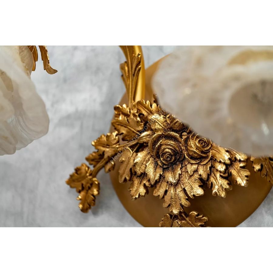 The decorative elements of this collection recall the floral world, in this case the rose is the predominant element, both in the brass decorations in Satin or French Gold finish, and in the glass diffusers, here further embellished with golden specks