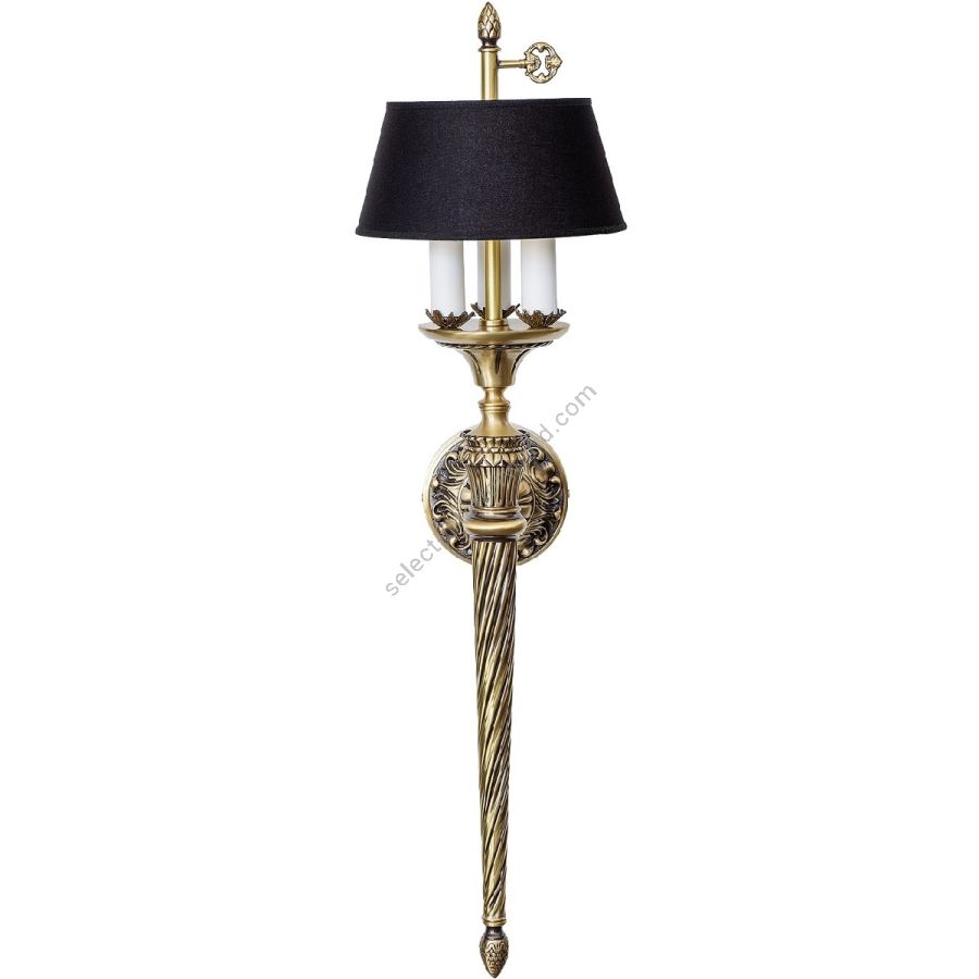 Brass wall light in antique brass finish and black shade, with tasteful and classic style.