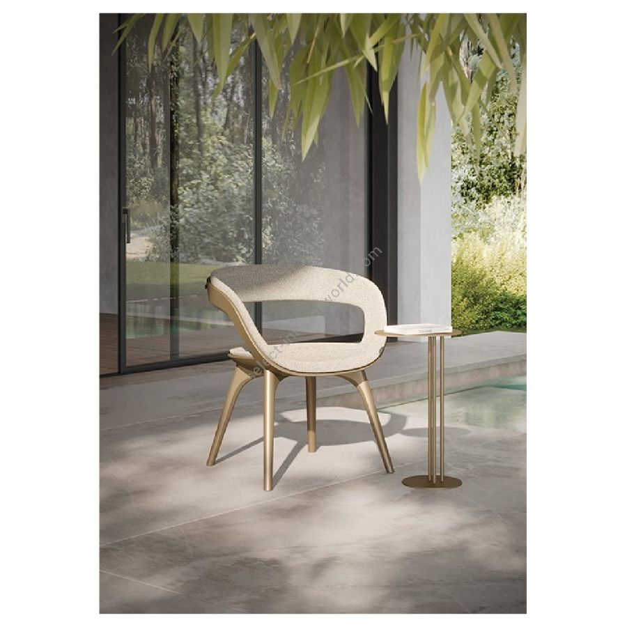 Armchair with a shell and legs painted in bronze 100M, brass 104M, dark brass 105M, or titanium 101M. Internal covering available in leather or fabric. Rear handle in polished steel with the Pininfarina logo.